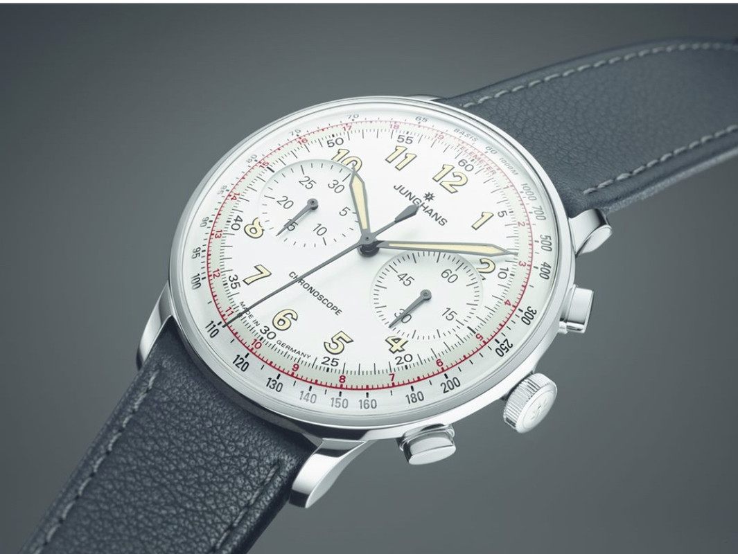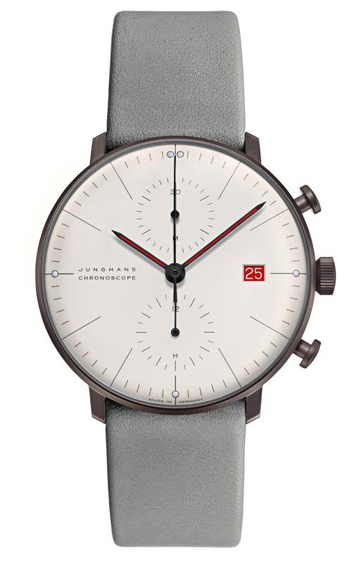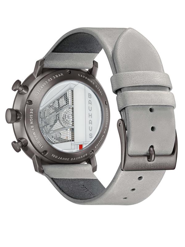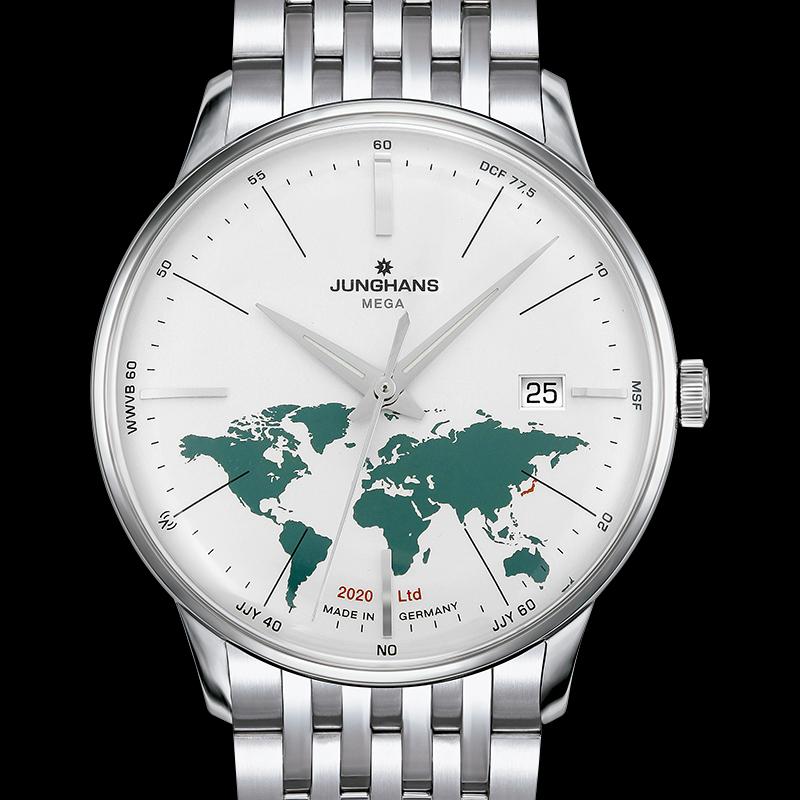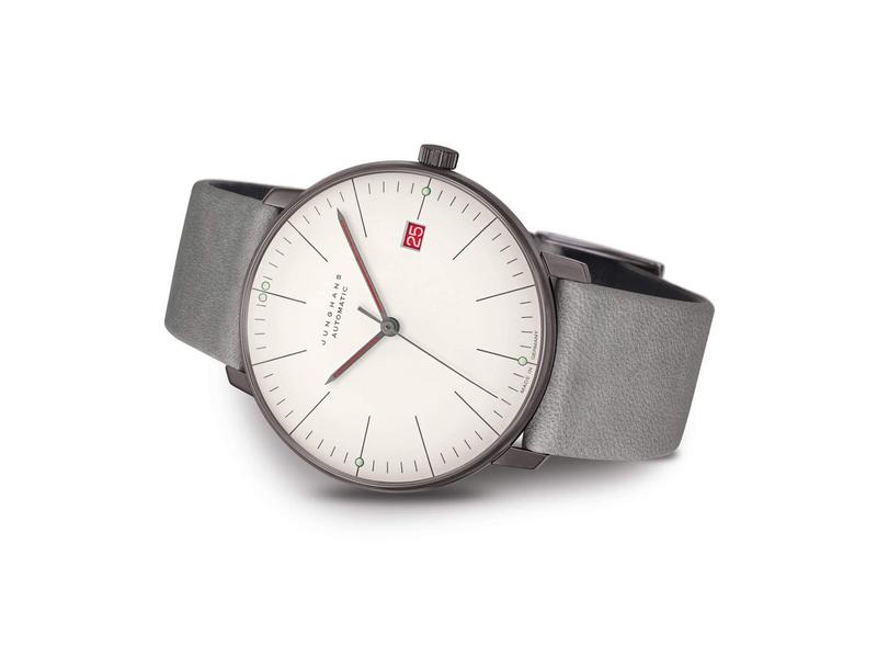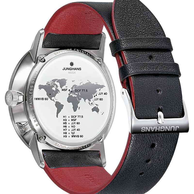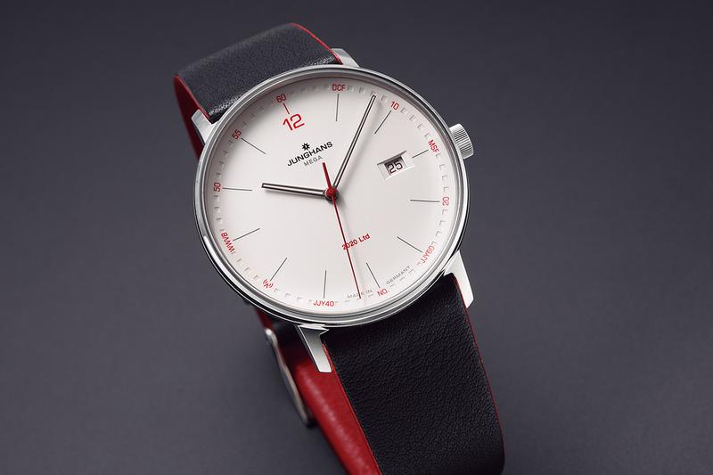 Available in three dials with either a leather strap or a steel Milanaise bracelet, the Max Bill Mega has a 38mm wide and 9.3mm thick steel case with a domed plexiglass crystal (with a scratch resistant coating) and 3 atm water resistance. With a date display at three and a matching crown, the Mega looks like any of Junghans Max Bill-derived designs, until you get to the internals.
