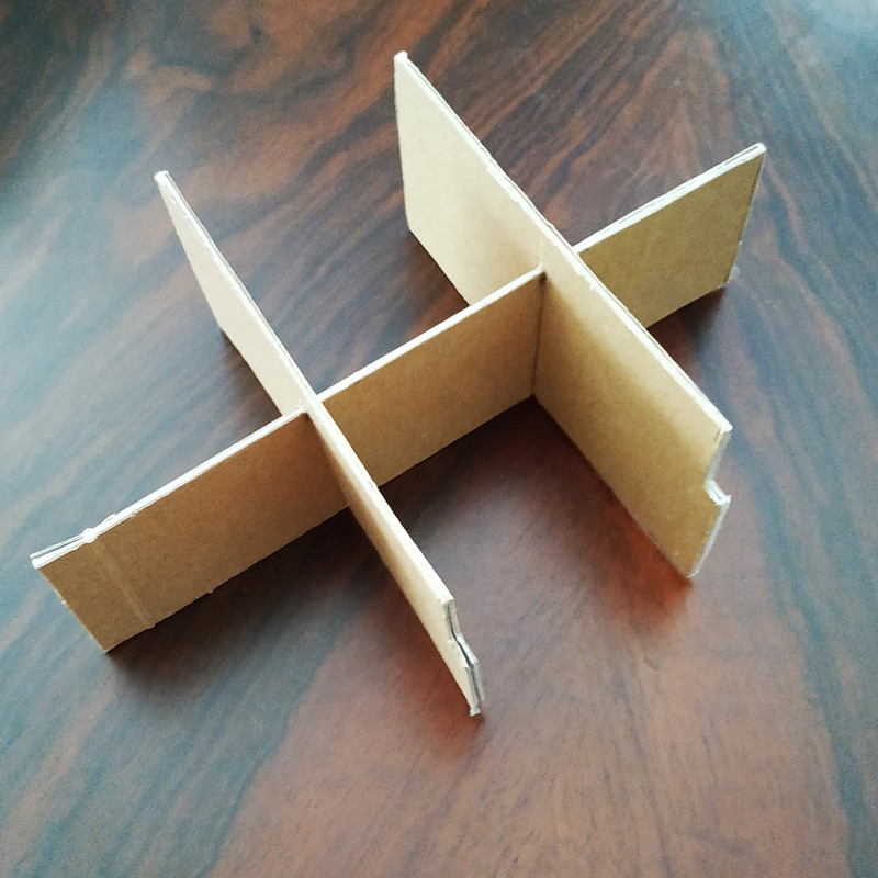 Στα χωρίσματα και πάλι. Κάνουμε εγκοπές ώστε το ένα χαρτόνι να μπει μέσα στο άλλο.