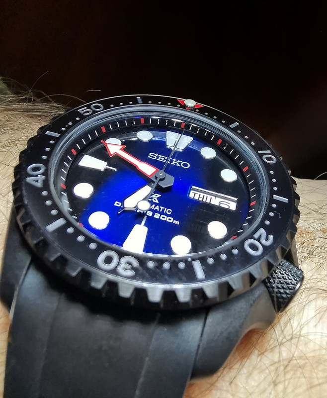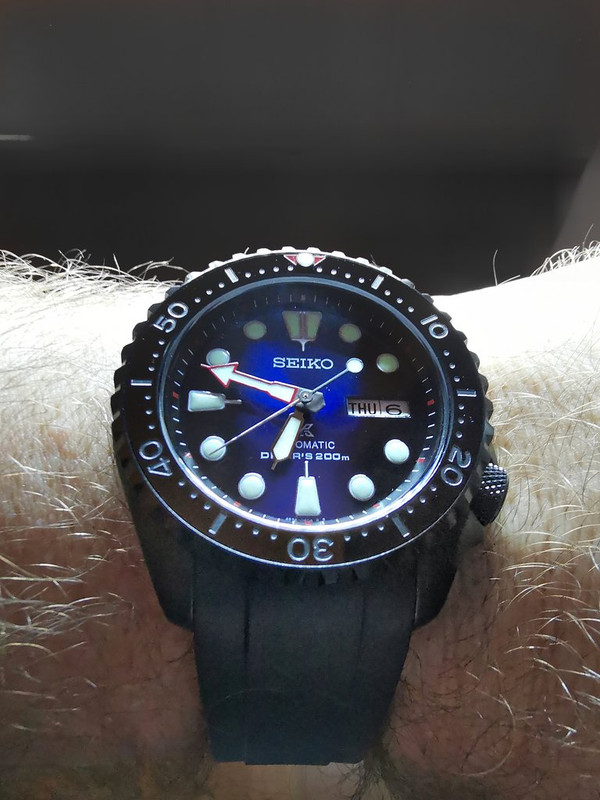 Επίσης ένα στοιχείο που δεν είχα φανταστεί είναι ότι με αυτή την αλλαγή συγκεκριμένα, γίνεται πάρα πολύ ορατή η φλάτζα του κρυστάλλου (crystal gasket), που δυστυχώς είναι ανοιχτού χρώματος και κάνει πολύ μεγάλη αντίθεση μεταξύ bezel insert & chapter ring. Αυτό από μόνο του αποτελεί casus belli, τουτ' έστιν, παράγγειλα ήδη τα υλικά για την επόμενη αλλαγή