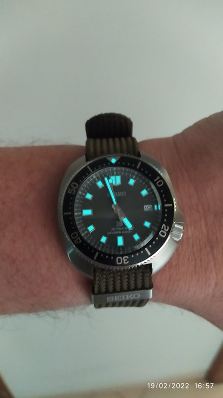 Αυτό που κάνει ξεχωριστή αυτή την έκδοση είναι η τεχνητή εικόνα παλαίωσης που έχει στο dial, στο bezel insert και φυσικά στο lume. Θεωρώ ότι είναι πολύ πετυχημένες αποχρώσεις και ειδικά το lume είναι τόσο όσο για να μην χαρακτηριστεί fauxtina. Στη συσκευασία περιέχονται δυο λουράκια nato αρκετά καλής ποιότητας αν και λίγο σκληρά.