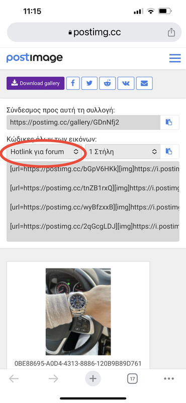 (Κάντε κλικ εδώ να εμφανιστεί η φωτογραφία.)Δημήτρη πας εκεί που λέει: "Hotlink for forums"