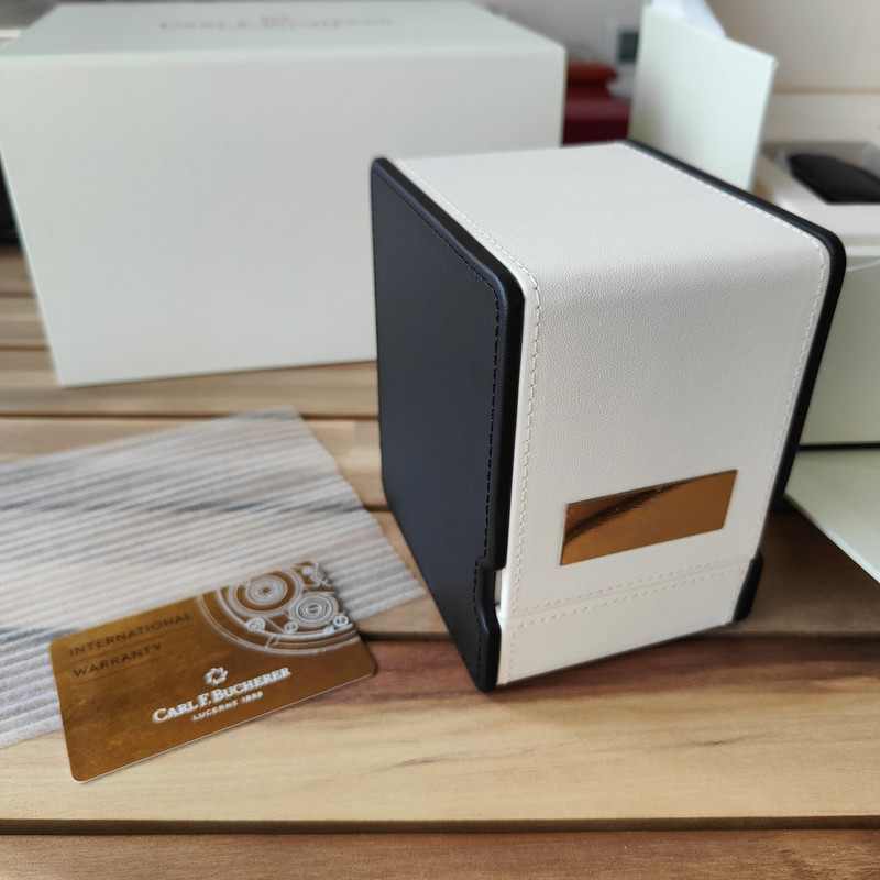 At their heart ticks Carl F. Bucherer’s manufacture caliber CFB A2050, a COSC-certified chronometer with a peripherally mounted automatic winding system and a power reserve of 55 hours. Its beautiful finishings can be admired through the exhibition case back.