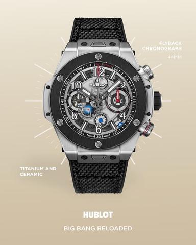 A 44mm composite case infused with Novak Djokovic’s racquets and polos houses the MHUB6035 automatic tourbillon