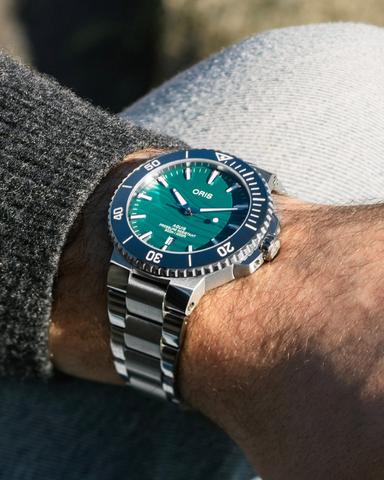 Based on our Aquis Date dive watch, it has a 43.50 mm stainless steel case