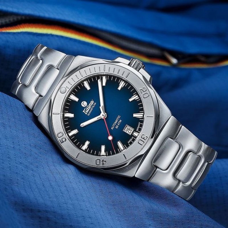 The new Tutima M2 Seven Seas S, ref 6156-04 features a 40mm stainless steel case, blue dégradé dial, and is powered by the Cal. Tutima 330 automatic movement