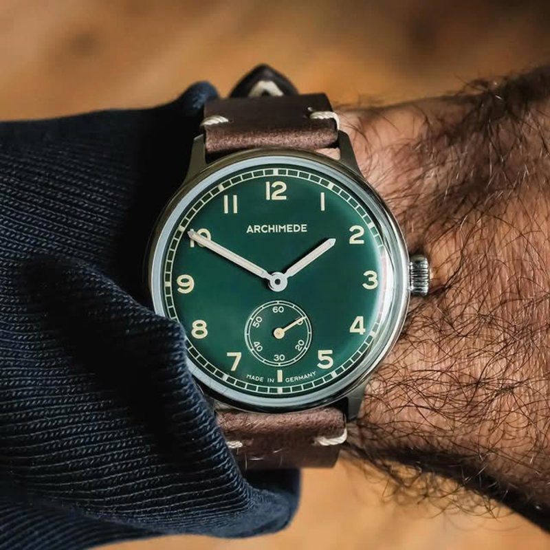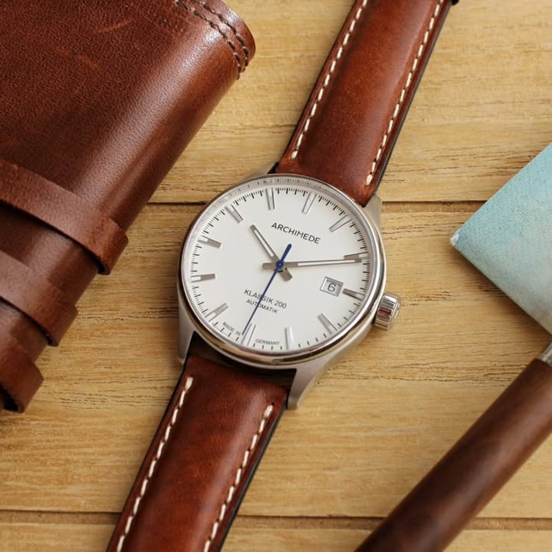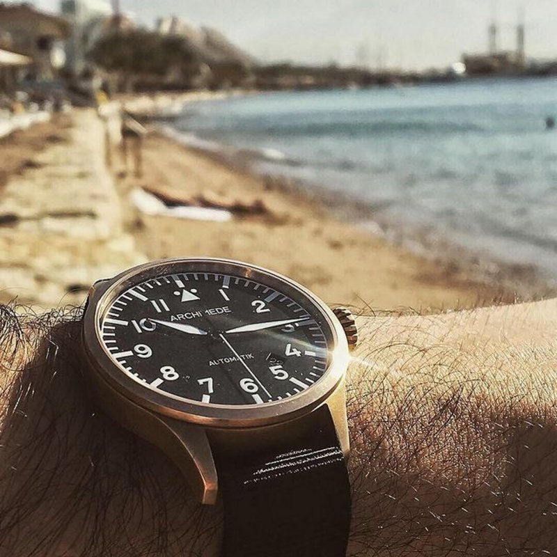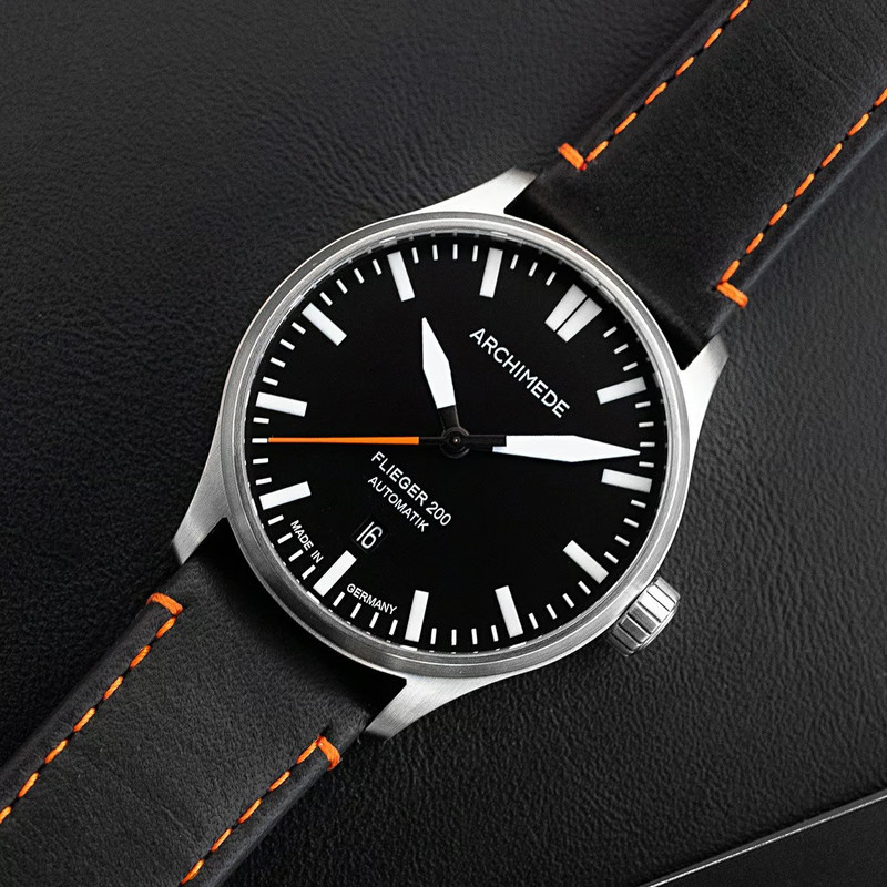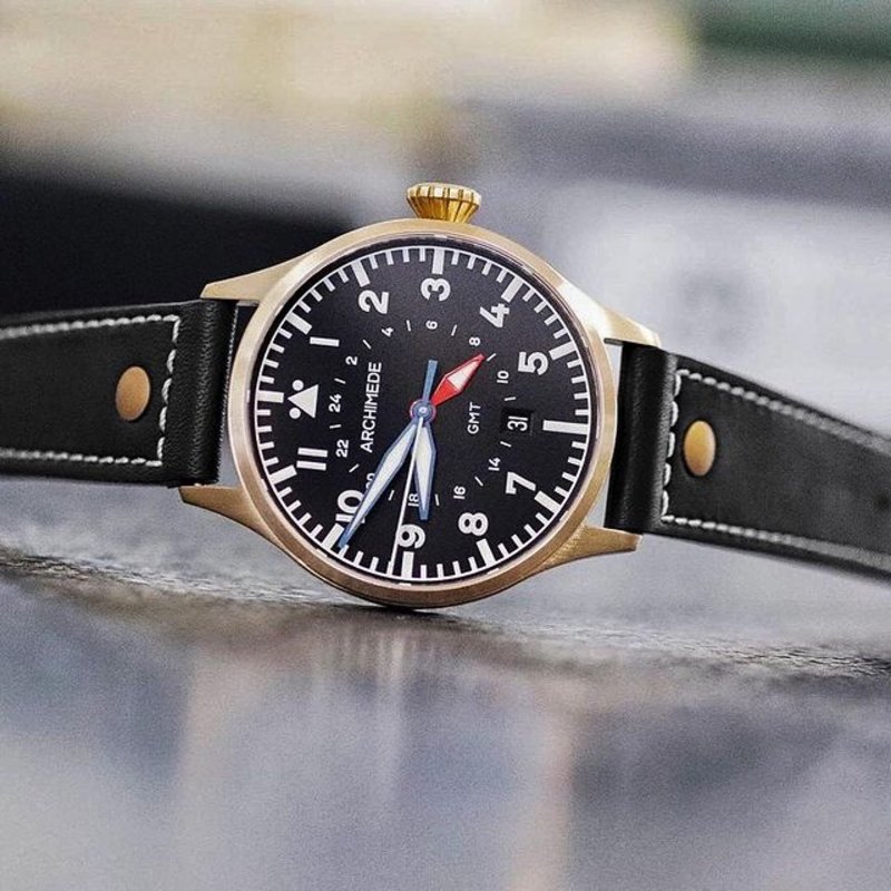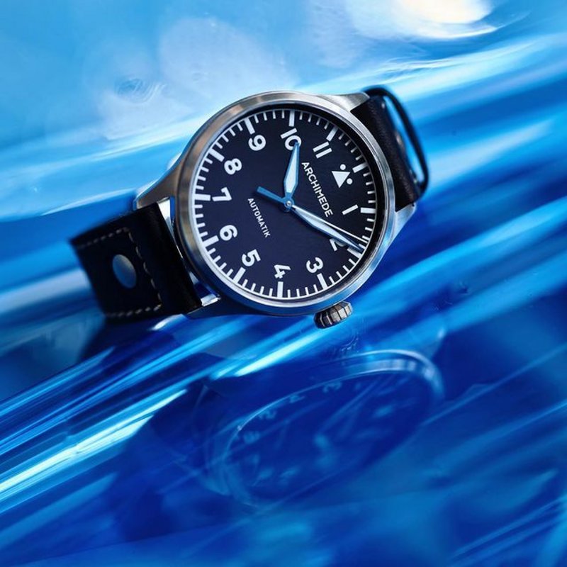 The retail price of ARCHIMEDE Pilot 42 Titan with titanium bracelet is €1,200 including VAT. The model with leather strap costs €980 incl. VAT.