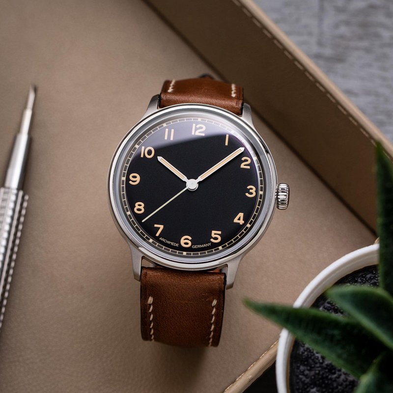 This model is available in two dial styles: Pilot 42H with regular three hand lay-out and Pilot 42B, inspired by the iconic Beobachtungs style.