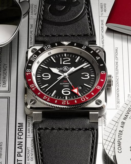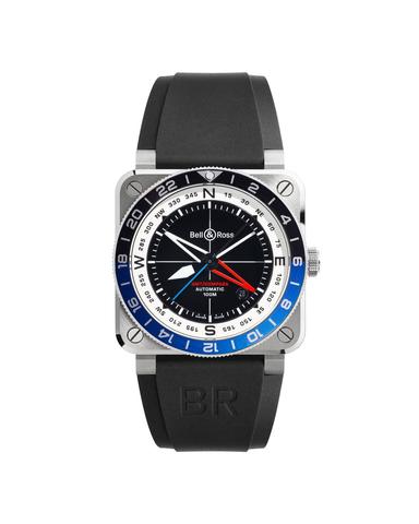 the BR‑03 GMT Black is your go-to travel companion—with its dual time zone feature and timeless cockpit-inspired design