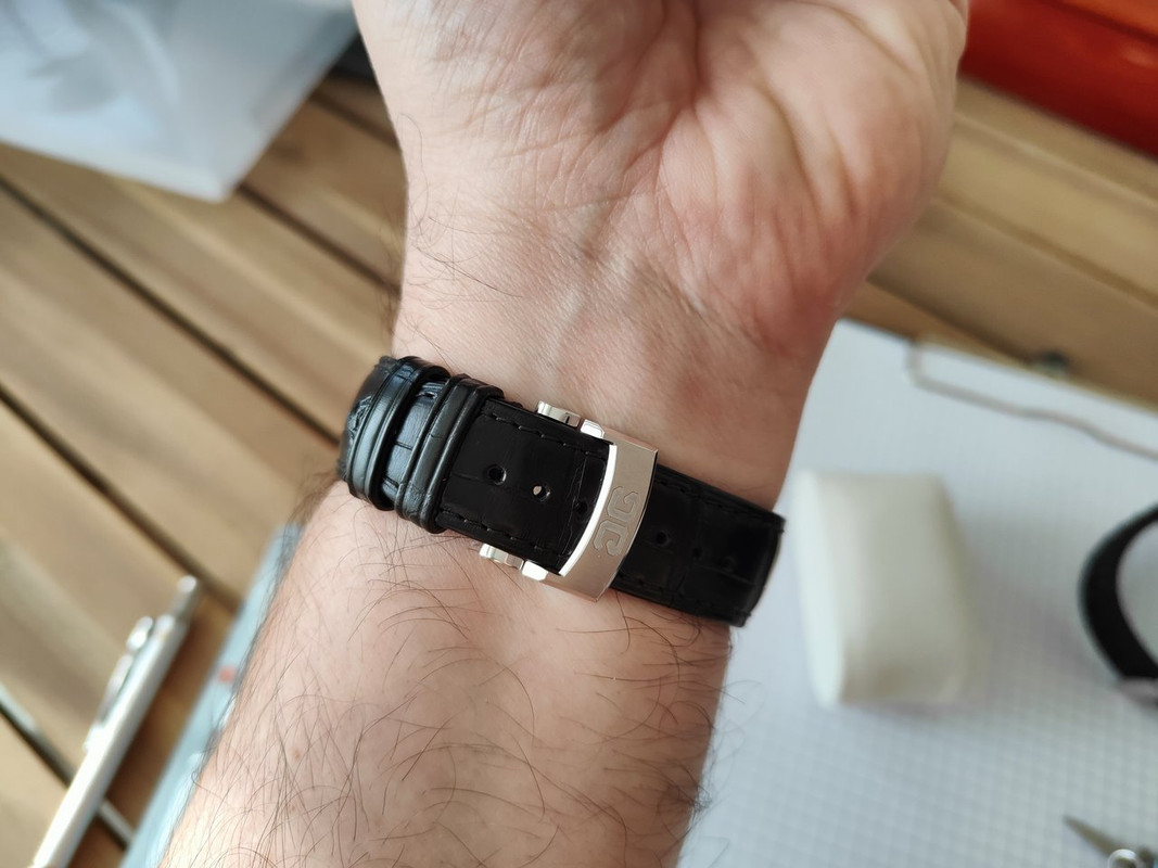 Strap: Matt green Louisiana alligator leather with rose gold pin buckle