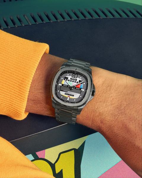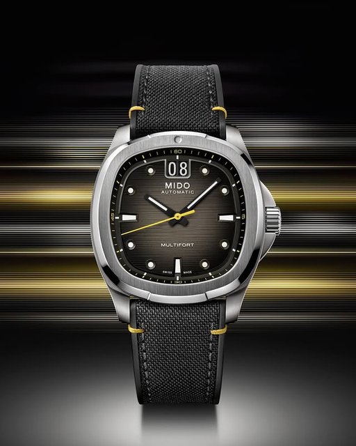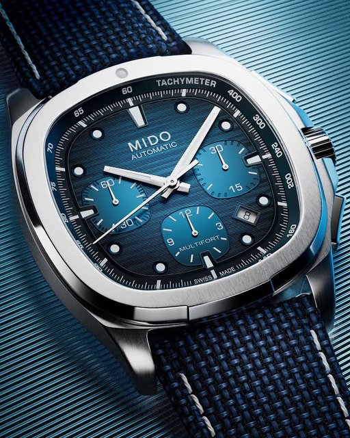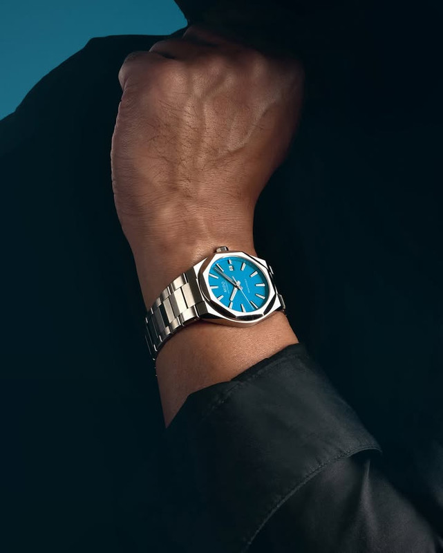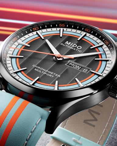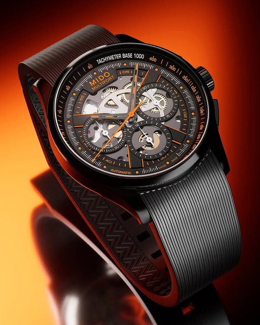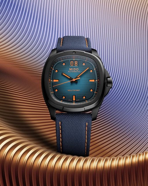 black PVD-treated case, blue textile strap and signature bright orange big date