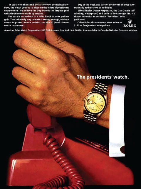Το President, το διέθετε τότε με επιλογές σε κίτρινο χρυσό, λευκό χρυσό και πλατίνα.