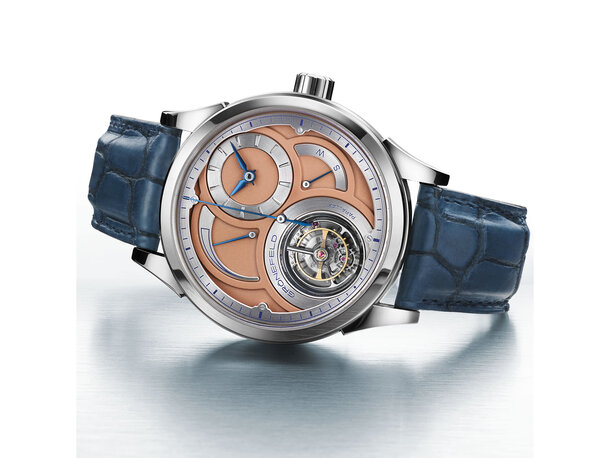 flying tourbillon με large central seconds hand, stop seconds,power-reserve indicator κ winding-setting function indicator.