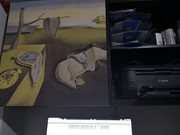 Το αριστερα ντουλαπι, πηρα απο εκτυπωση σε καμβα το γνωστο πινακα του Νταλι και τον προσαρμοσα ? κολλησα πανω. Αντιστοιχα εχει τρυπηθει απο μεσα προς τα εξω κι εχει εφαρμοστει εσωτερικα ωρολογιακος μηχανισμος (απλος quartz) , με σκοπο να γινει ρολοι "τοιχου" αυτοσχεδιο, που θα χει και "θεμα" την Ωρα, και τον ιδιο σκοπο επισης. Κι ενω η ιδεα μου ηταν μια χαρα, δυστυχως ο μηχανισμος δε δουλευει και θελει καποια στιγμη να ψαξω να βρω καποιον καλυτερο....Aλλα ακομη κι ετσι προς το παρον, αισθητικα με καλυπτει
