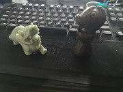 Το αριστερα ειναι εναs Pi Xiu, με κεφαλι δρακου και σωμα λιονταριου. Το πηρα απο την κινα, και ειναι απο το παραδοσιακο Jade που εχουν εκει. Ειναι σημαντικο για το φενγκ σουι (με το οποιο δεν ασχολουμαι) και επισης επειδη εχει μεγαλο στομα (και δεν εχει κωλο οπως ειπε χαχανιζοντας η κινεζουλα ξεναγος) , ειναι γουρι για υλικη ευημερια.