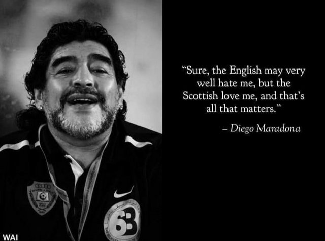 Ο Μαραντόνα ήταν η περηφάνια των Αργεντινών, ήταν το κίνητρο για το ψυχικό ξέσπασμα μετά από χρόνια σκληρής χούντας και μιας στρατιωτικής ήττας στα Φόκλαντς. Ο Ντιέγκο, ειδικά με το «χέρι του Θεού» είχε πάρει πίσω το αίμα για έναν ολόκληρο λαό.