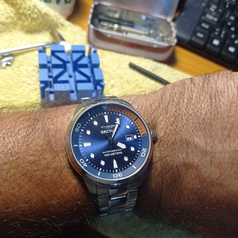 Αγόρασα το πριν ένα μήνα το Sector 230 No limits. Το πρώτο μου αυτόματο ρολόι, άργησα πολύ να μπω στο σπορ. Δεν ήθελα να ξοδέψω πάνω από 300 ευρώ, και ήταν ακριβώς στο όριο που είχα θέσει. Τελικά το πήρα σε καλύτερη τιμή από ανεξάρτητη εισαγωγή. Είναι ακριβώς στο μέγεθος που μου αρέσει πολύ στα 43 χιλιοστά, ο εγκέφαλός μου έχει "κλειδώσει" ανάμεσα στα 42 έως 44 χιλιοστά διάμετρο.