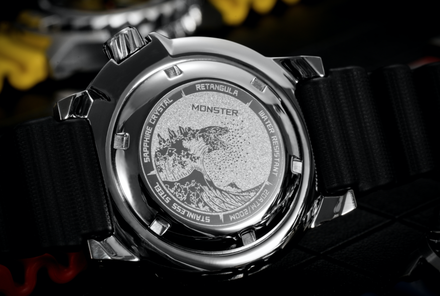 H εικόνα στο caseback με τον Godzila είναι αρκετά γνωστή, υπάρχει σε μπλουζάκια κτλ άρα σίγουρα δεν είναι κάτι original. Δεν νομιζω ότι είχανε σκοπό να αντιγράψουν το tsunami της seiko απαραίτητα.