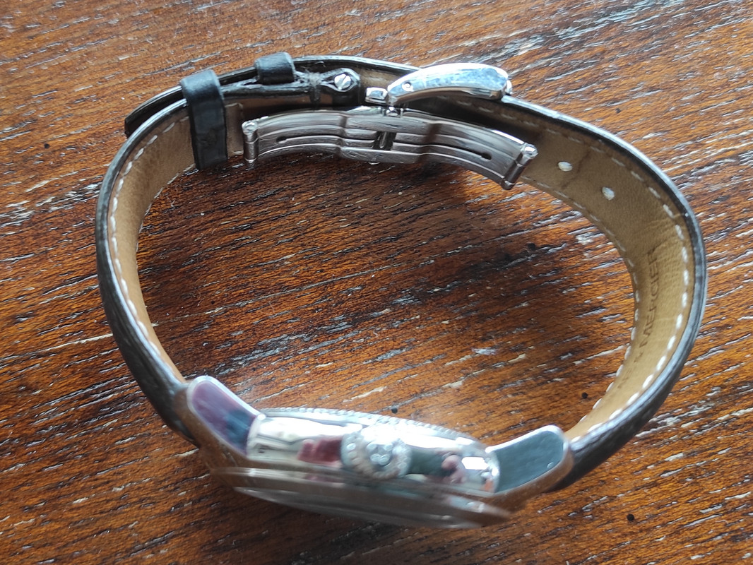 Αυτό είναι butterfly deployant clasp με push buttons. Το έχω εδώ και 15 χρόνια, ακόμη λειτουργεί άψογα. Δίνει περισσότερο όγκο στο λουράκι συνολικά στο κάτω μέρος του καρπού, αλλά ούτε αυτό με ενοχλεί στο ελάχιστο. Το μόνο μειονέκτημά του είναι ότι θέλει μερικές κινήσεις παραπάνω στο κλείσιμο, μετά από τόσα χρόνια το κάνω μηχανικά.