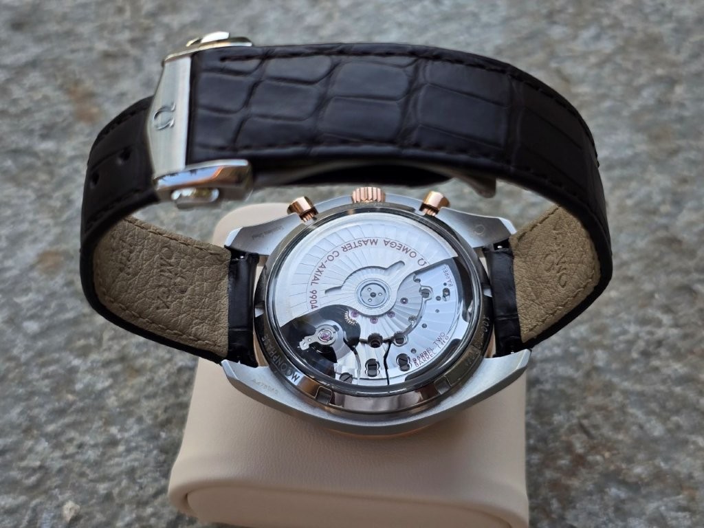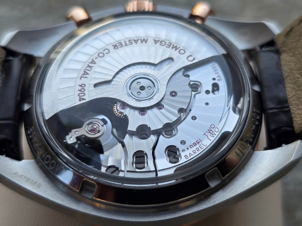 Η Omega πραγματικά κατάφερε να κρατήσει έναν εξαιρετική ισσοροπία στο ρολόι αυτό, όπου ο χρυσός Sedna (πιο ρόζ παρά κίτρινος) παίζει τέλεια με το ατσάλι και το καφέ καντράν/λουράκι, χωρίς αφ'ενός να υπερνικά απο καμία γωνία "ξεβγάζοντας" τους καφέ τόνους και αφ' ετέρου να "χάνεται κάπου" μέσα στο καφέ. Επίσης, να πούμε ότι επειδή δεν μας αρέσει ιδιαίτερα το κίτρινο χρυσό επάνω μας, το ρόζ Sedna μόνον στο Bezel, τους δείκτες/indices και την κορώνα/κουμπιά είναι το maximum που εμείς θα φοράγαμε ποτέ σε ρολόι ή γενικά (και μόνον από ηλικία που αρχίζει από 5(0) και πάνω)!