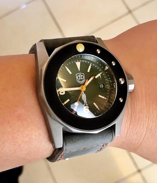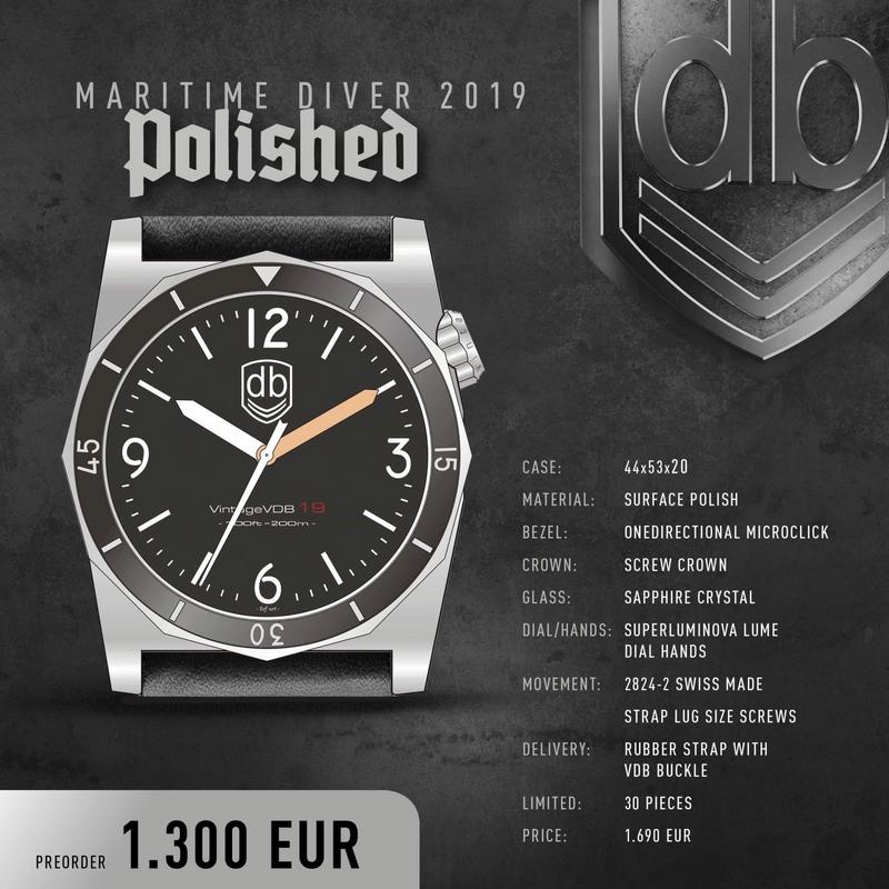 Inside the waterproof P1000, which is up to 1,000 meters, is an ETA 2824-4 that is protected against magnetic fields up to 80,000 A / m. The sandblasted case comes with a hardened surface ( "hard fabric coating with 650-750 HV" ), a black version is available with DLC , also a polished version with stainless steel case and one in bronze  (but this is then with a NOS Adolph shield 1700 work and Plexiglas equipped, and thus logically also without chronometer certificate). The edition is 20 each, the prices start at € 3'490.00.