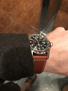 To ανοιχρό καφέ stiched λουράκι δείχνει πολύ ανθεκτικό και στιβαρό ενώ δεν κουράζει καθόλου το χέρι. Μπορεί να μην έχει butterfly clasp αλλά φαίνεται πολύ ποιοτικό. Το καντράν όπως και να χει είναι ευανάγνωστο και αν το δεις από κοντά έχει ένα διακρτικό ανάγλυφο. Αν και έχω μέτριο προς μικρό καρπό, το 38mm mechanical που είχα δοκιμάσει παλιά μου καθόταν μικρό. Το 42mm όπως θα δείτε είναι οριακό, όμως τα κυρτά (22mm) lags αλλά και ο χαρακτήρας του ρολογιού το κάνουν να κάθεται πολύ καλύτερα από ένα αντίστοιχο dress. Η χρονομετρία του τέλος, ως τώρα μοιάζει εκπληκτική με ελάχιστες αποκλίσεις (περίπου 5 sec/day). Στα 425 ευρώ που μου κόστισε από φυσικό κατάστημα (με 5ετή εγγύηση) νομίζω ότι είναι ένα αξιοπρεπές ρολόι. Σας ευχαριστώ για τη φιλοξενία.