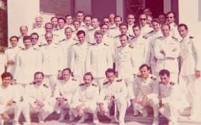 Εικόνα: Η φωτογραφία αυτή "τραβήχτηκε" μπροστά στο κτίριο της Σχολής Πολέμου Ναυτικού στο Βοτανικό, σε ένα διάλειμμα των συνεδριάσεων του Πρωτοβάθμιου Ανακριτικού Συμβουλίου, το οποίο απέταξε από τις τάξεις του Πολεμικού Ναυτικού τους κινηματίες αξιωματικούς. Χρονικό διάστημα 31 Αυγούστου - 2 Σεπτεμβρίου 1973.