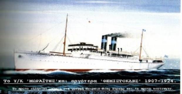 Το πρωί της 4/7/1907, το υπερωκεάνειο «Μωραίτης», ξεκινά το παρθενικό του ταξίδι: Πειραιάς, Καλαμάτα, Πάτρα, Νέα Υόρκη, στην οποία έφθασε 14 ημέρες αργότερα, εγκαινιάζοντας την τακτική γραμμή επικοινωνίας με την Αμερική, μεταφέροντας Έλληνες μετανάστες. Το πλοίο ήταν ό,τι καλύτερο είχε να επιδείξει την περίοδο εκείνη η ελληνόκτητη ναυτιλία. Ναυπηγημένο στη Μ. Βρετανία, διπλέλικο, ατμοκίνητο, με δύο φουγάρα και δυνατότητα μεταφοράς 1.700 επιβατών (100 στην α’ θέση, 100 στη β’ και 1.500 στη γ’. Το «Μωραίτης» ανήκε στον Ανδρειώτη εφοπλιστή Δημήτρη Μωραίτη, ο οποίος σε μια περίοδο που το μεταναστευτικό ρεύμα κορυφώνονταν συνέστησε την πολυμετοχική εταιρεία «Ελληνική Υπερωκεάνειος Ατμοπλοϊκή Εταιρεία», στην οποία συμμετείχαν πολλοί κεφαλαιούχοι της εποχής αλλά και πολλοί φτωχοί Ανδρειώτες, παρασυρμένοι από τις υποσχέσεις παροχής ετήσιου κέρδους 15% επί του επενδεδυμένου κεφαλαίου. Ήταν ένας ευφυής εφοπλιστής, ο οποίος απευθυνόμενος στην κεφαλαιακή συνδρομή μικρών κεφαλαιούχων, επιχειρούσε να αλλάξει σελίδα στα ελληνικά δεδομένα. Μια συνήθης κυκλική ναυτιλιακή κρίση στα 1908 έριξε τους ναύλους και στη συνέχεια κάποια ναυτικά ατυχήματα έφεραν την πτώχευση. Ο Μωραίτης έφυγε στο Λονδίνο, προσπαθώντας με κάποιες επιχειρηματικές δραστηριότητες να καλύπτει οικονομικά τους ασθενέστερους από τους πιστωτές του. Πέθανε πάμπτωχος το 1942. Το πρώτο ελληνικό υπερωκεάνειο μετά την πτώχευση αγοράστηκε από την «Υπερωκεάνειο Ελληνική Ατμοπλοία», μετονομάστηκε σε «Θεμιστοκλής» και συνέχισε να ταξιδεύει αλλάζοντας στη συνέχεια και άλλους πλοιοκτήτες. Πουλήθηκε για διάλυση στη Γένοβα το 1933.