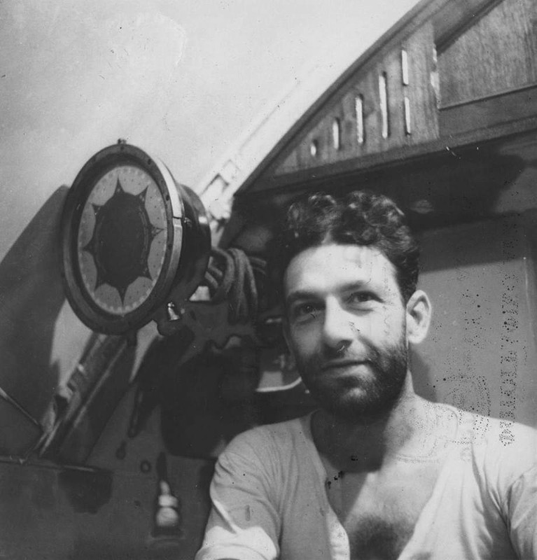 Στη φωτο ο κυβερνήτης του Υ/Β πλωτάρχης Ράλλης. Στα αριστερά του αυτό που μοιάζει με χωνί - ηχείο είναι ένας από τους τέσσερις επαναληπτες( βασικό εξάρτημα) της γυροσκοπικης πυξίδας.