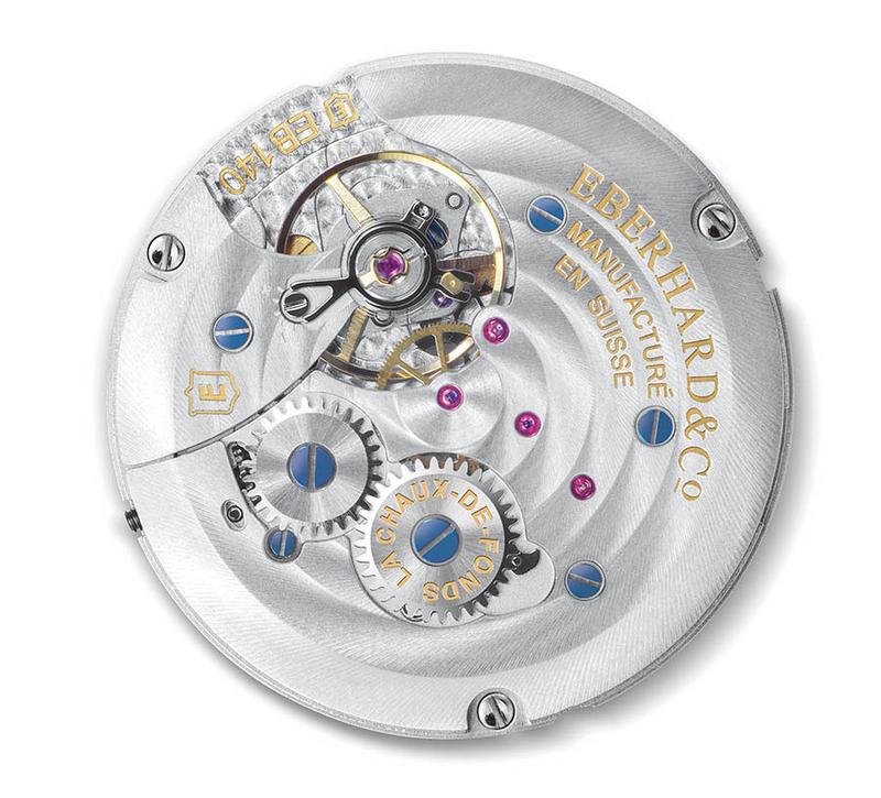 Among the first products to be manufactured by Eberhard in its new/old home is an entirely new movement, the hand-wound Caliber EB 140, which will feature, according to the company, a harmoniously balanced design that emphasizes geometric shapes. Among its aesthetic highlights will be a balance wheel and gear train bridges with vagues circulaires finishing (circular Geneva waves), blued screws, and gold engravings. Eberhard & Co., which has long relied on outsourced movements for its watches in the modern era, says that the new caliber will be used in “timepieces with a vintage flair.”