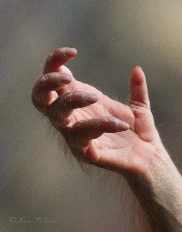 The hand of a young orangutan, photo by Jessie Williams (2017)