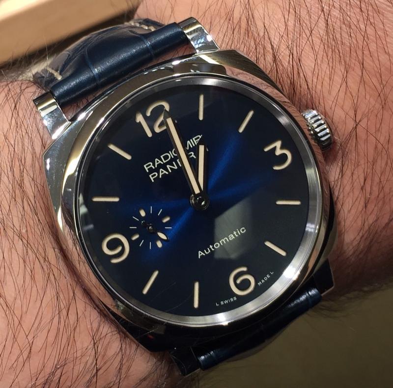 Automatic mechanical, P.4000 calibre, executed entirely by Panerai, 13¾ lignes, 3.95 mm thick, 31 jewels, Glucydur® balance, 28,800 alternations/hour. KIF Parechoc® anti-shock device. Power reserve 3 days, two barrels. 203 components. Off - centered oscillating weight
