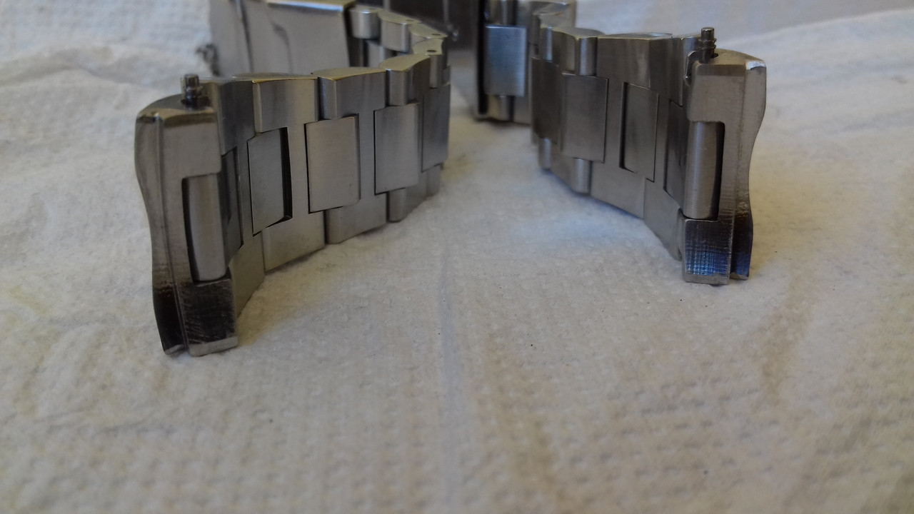 Την φωτογραφία αυτή την θεωρώ σημαντική, γιατί δείχνει το πριν και το μετά ενός μπρασελέ ROLEX, μετά την αντικατάσταση όλων των πίρων. Είναι προφανές ότι μπρασελέ μ΄αυτήν την φθορά, μπορεί να είναι η
