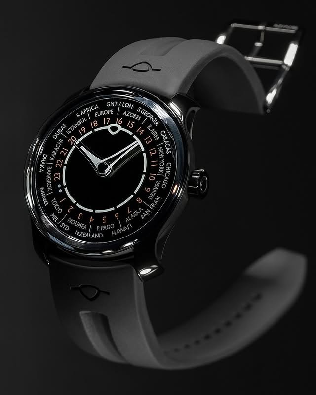 new 29.01 ‘Midnight’ worldtimer features a sleek black DLC coating, suspending sapphire dial elements in a mesmerizing void