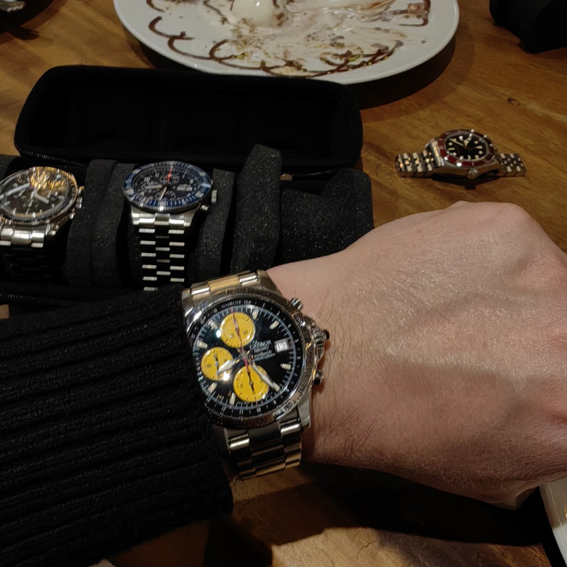 Ο best friend παρέλαβε εχθές αυτό το υπέροχο, καταπληκτικό κτλ. κομμάτι που όσο κι αν προσπάθησα δεν κατάφερα να το φωτογραφίσω σωστά. Είναι πολύ πιο ωραίο στην πραγματικότητα … κι επειδή τον βλέπω κάθε μέρα κι ότι ξέρει από ρολόγια το έχει μάθει από εμένα … θα του κάνω κατάσχεση μέχρι να έρθει το δικό μου  ;)