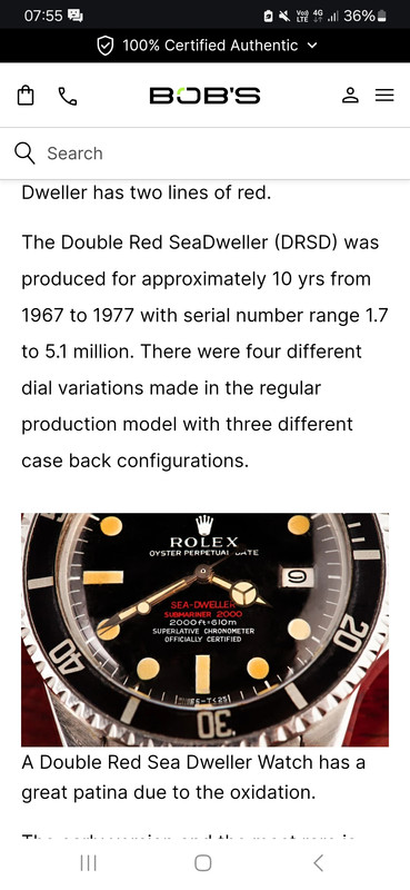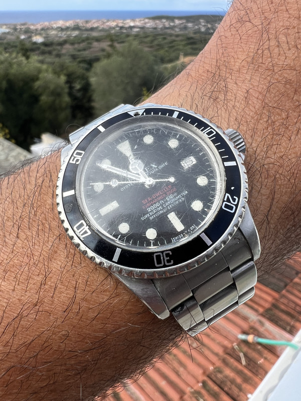 Είναι το SEA-DWELLER / Submariner 2000 Ref.1665 Double Red Line που κυκλοφόρησε από το 1967 μέχρι το 1979. Ο κύριος είναι Άγγλος, έχει γεννηθεί το 1956 και νομίζει ότι το αγόρασε το 1980 ή το 1981 για 250 λίρες χωρίς να θεωρείται φτηνό για την εποχή του.