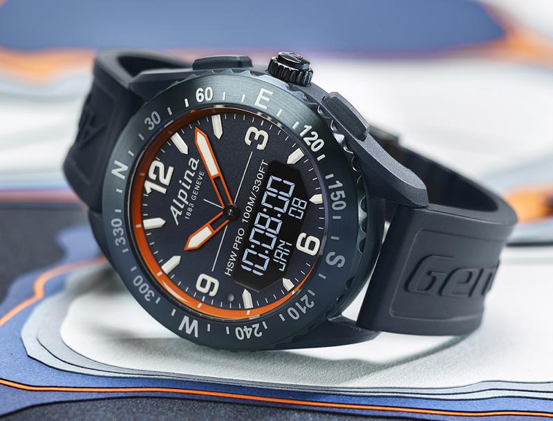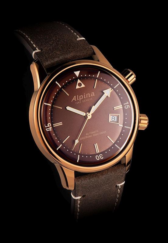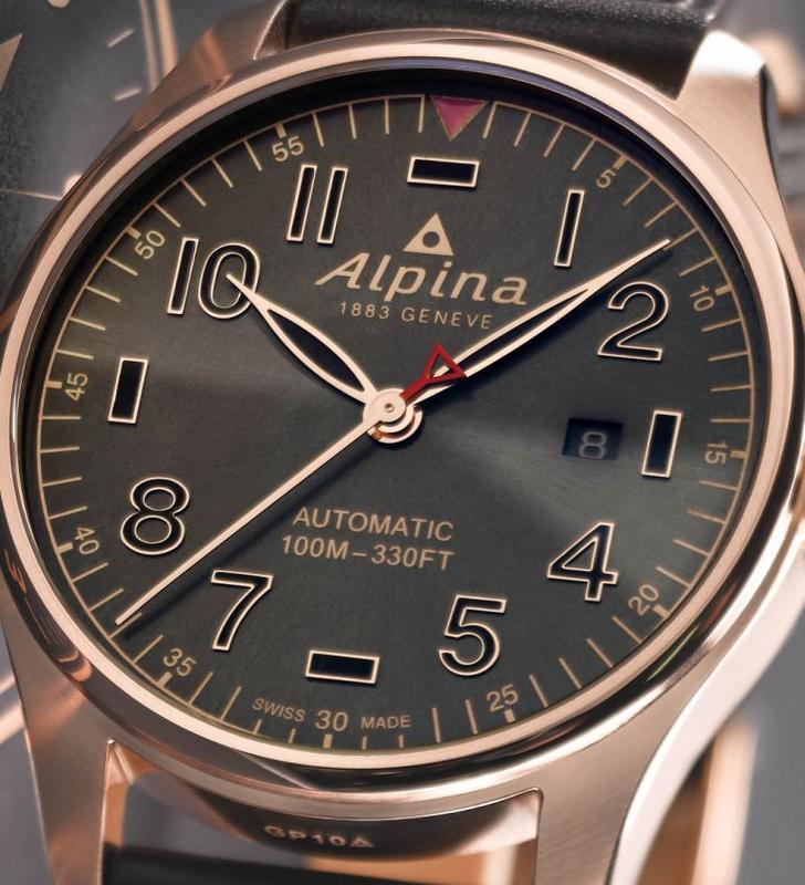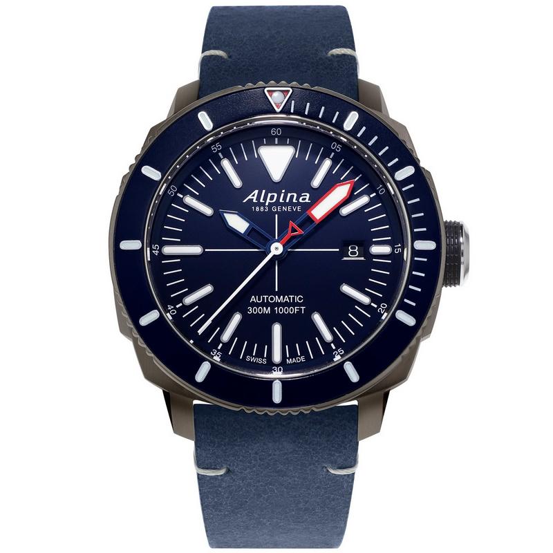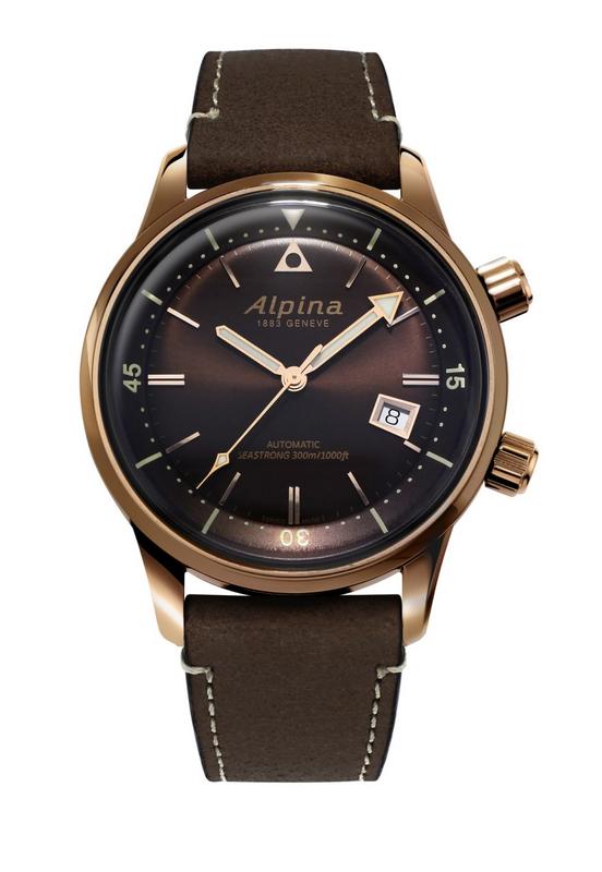 Movement is the Swiss automatic Alpina caliber AL-525 (base Sellita SW200) with 26 jewels, 28,800 vph and a power reserve of 38 hours. Functions are: hours, minutes, seconds, and date.