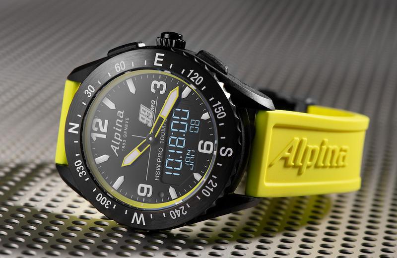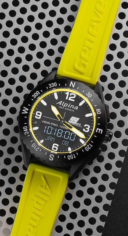 Movement is the Swiss quartz Alpina in-house caliber MMT-283-1, Horological Smartwatch. All connected functions operated by the crown. Functions are: hours, minutes, seconds, and date. Activity Tracking: Heart Rate Monitoring (over BLE connection). Sleep Monitoring, Dynamic Coach, Worldtimer (2nd timezone plus local 24h time). Smart Alarms (Get-Active Alerts, Sleep Alarm). Calls & Messages Notifications. UV Indicator, Altitude Compass, Temperature, Time Recorder (Stopwatch, Timer, Workouts) and a Barometer.