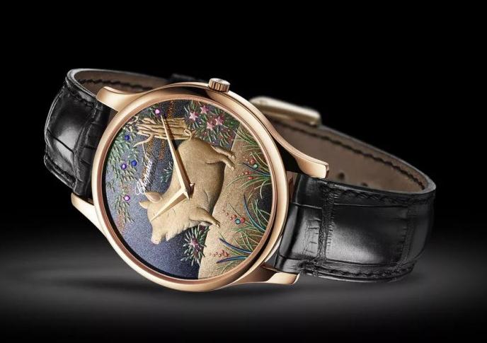 The movement is Chopard L.U.C. caliber 96.26-L, which offers a 65 hour power reserve in a relatively flat, 3.30mm movement; it's a micro-rotor caliber with a white gold winding rotor and is finished very much to the standard that made L.U.C. movements so important to the history of modern watchmaking.