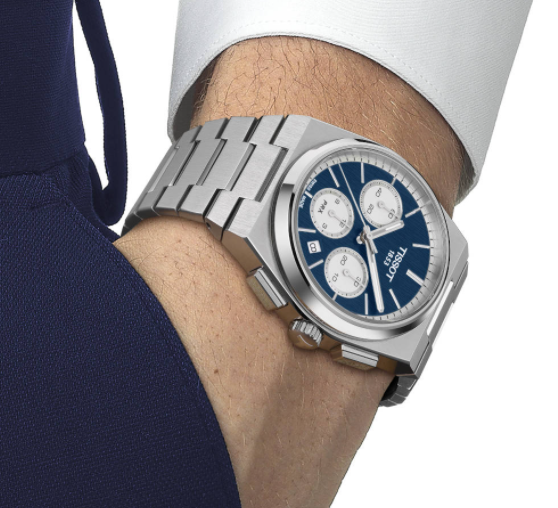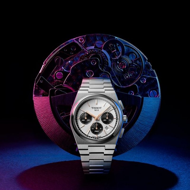 The PRX line has been joined by the high-functioning PRX Automatic Chronograph. This 42mm satin-finished steel watch will follow the PRX’s sleek, angular form, adding to the laid-back 1970s sports watch style with a so-called ‘panda’ dial, where white subdials are arranged on a contrasting black backdrop