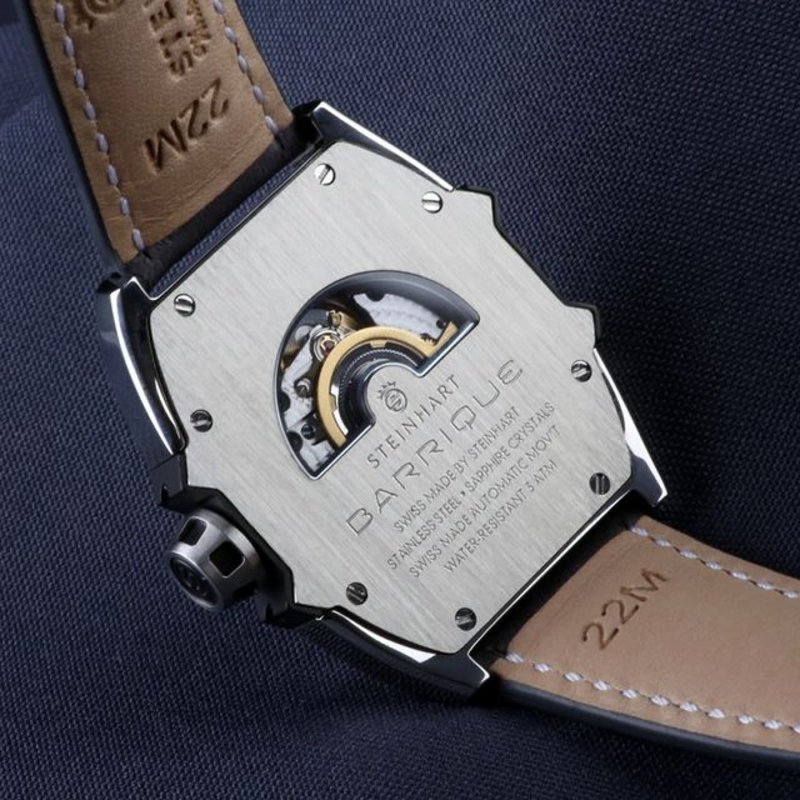 New Release: BARRIQUE SKU: 101-1356 Availability:  In stock As with exquisite barrique-aged wines, only the finest ingredients are used in the new STEINHART Barrique. From the double anti-reflective sapphire crystal to the elaborately finished stainless steel case, the high quality calfskin strap to the precise Swiss-made automatic movement SW300-1 PREMIUM , which you can watch at work through the glass back, a connaisseur's delight. The unusual hand play gives the STEINHART Barrique its special spice and makes it an eye-catcher par excellence