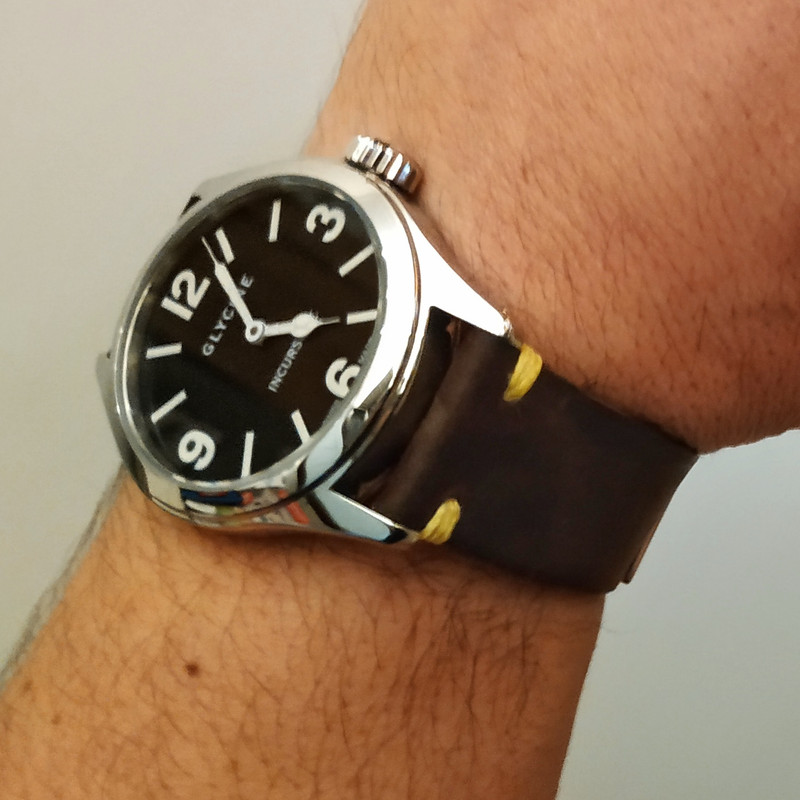 Glycine Incursore 44mm first generation (νομίζω), hand winding Unitas 6497, open case back.