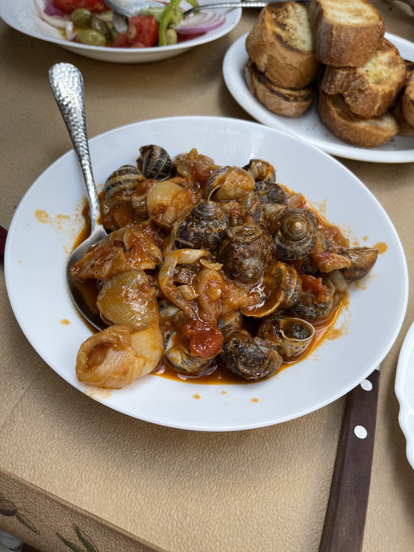 Διάλειμμα από τη δουλειά. Εδώ για ένα μεζεδάκι. Χοχλιούς κοκκινιστούς