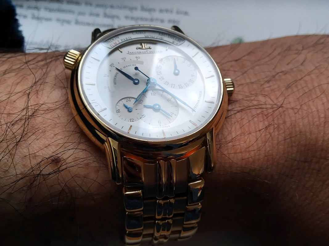 Ημερομηνία, GMT, day night, world timer, power reserve, heat blued hands και πολύτιμο μέταλλο ... και όλα αυτά βγαλμένα από το εργοστάσιο της JLC. Πολύ ωραία η συλλογή σου Ευάγγελε με το συγκεκριμένο ρολόι στην κορυφή. Top level υπέροχο κομμάτι!!!
