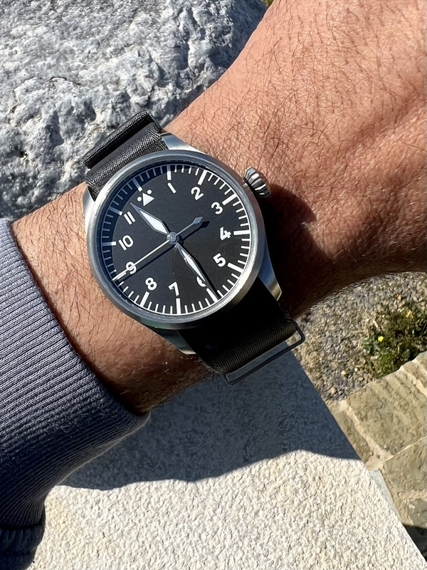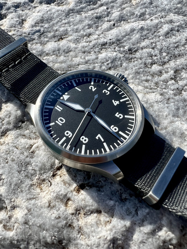 Πριν από μερικούς μήνες, κάπου το χτύπησα άσχημα κι έπαθε ζημιά. Το έστειλα για επισκευή και σέρβις … και αλλαγή των δεικτών. Οι μαμισιοι δείκτες ήταν οι κλασικοί heat blued που δυσκόλευαν την ανάγνωση λόγω του μαύρου dial. Εντάξει, έβλεπα την ώρα αλλά όχι "στιγμιαία" όπως επιβάλλεται σε ένα καθημερινό ρολόι. Πλέον η ευκολία ανάγνωσης έχει απογειωθεί … κάτι ξέρει η IWC που έχει καταργήσει τα heat blued hands από τα pilot.