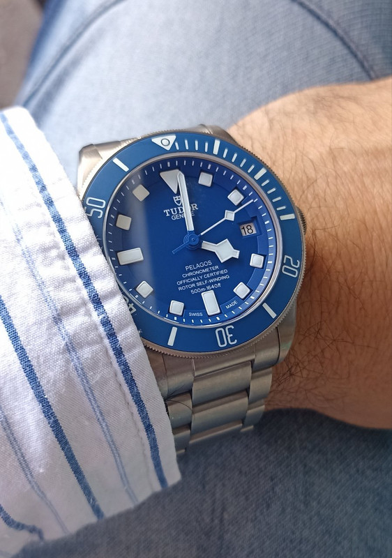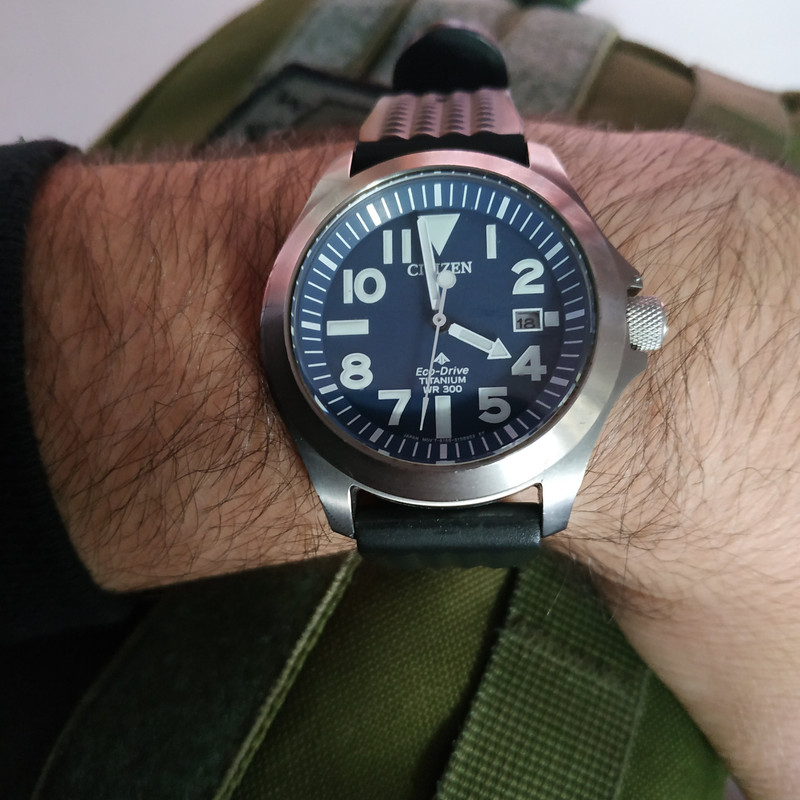 Άκου τι έπαθα με αυτό το ρολόι. Όσο δεν το είχα τόσο ήθελα να το έχω. Πήρα ένα στον αδερφό μου πράσινο και το έβλεπα να το φοράει και το ήθελα. Τα έχει όλα. Τιτάνιο, ελαφρύ, ζαφείρι, ραδιοελεγχόμενο με ecodrive perpetual calendar. Δεν ακουμπάς κορώνα, παρά μόνο για να αλλάζεις θερινό-χειμερινό. Μόλις το πήρα μου έφυγε η κάψα. Είχα να το βάλω ένα μήνα. Το ρύθμισα, το άφησα και τέλος. Ψιλοβίασα και το μπρασελέ για να το κοντύνω…