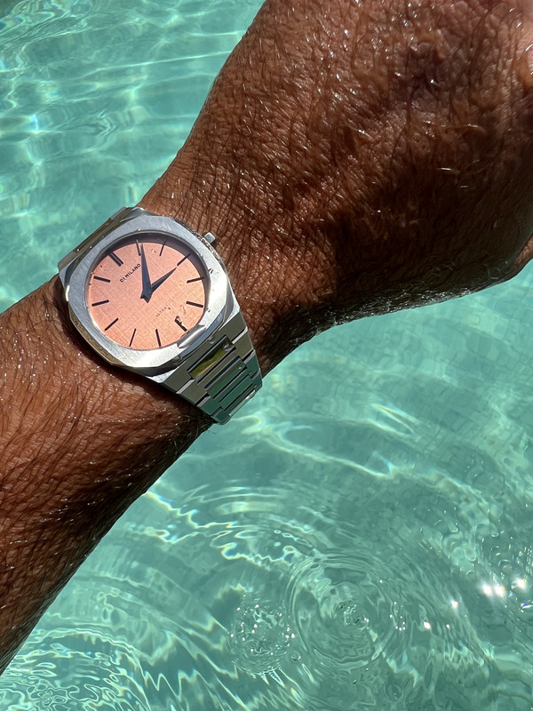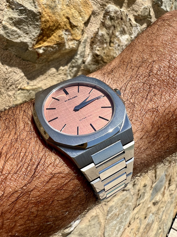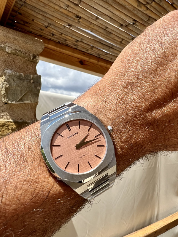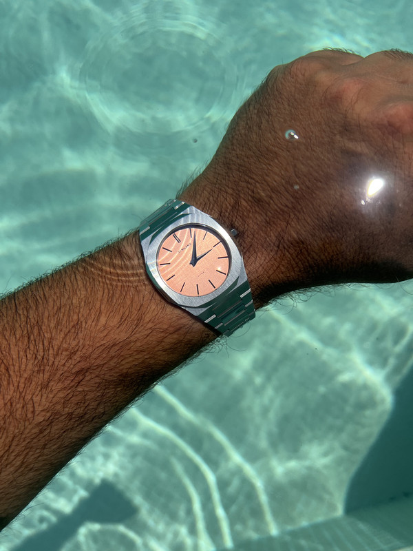 Με αυτά τα δεδομένα λοιπόν κατέληξα στο D1 ultra thin (σε φάση ultra thin είχα δοκιμάσει μόνο κάτι προφυλακτικά) ... και βλέποντας τα διαθέσιμα μοντέλα διάλεξα το Salmon dial. Πάντα μου άρεσε το Salmon dial στις φωτογραφίες, ευκαιρία λοιπόν να το δοκιμάσω και στον καρπό.