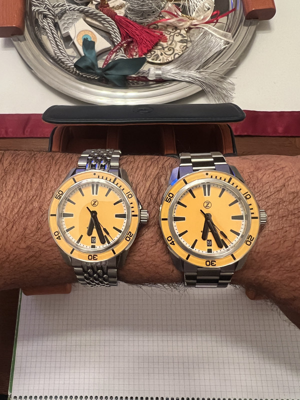 Αγόρασα το 42αρι και μετά από μερικές ημέρες παρατήρησα άσπρα σημαδάκια στο dial. Με τον μεγενθυτικο φακό κατάλαβα ότι πρόκειται για μικρά κομματάκια από ένα λευκό υλικό που φωσφορίζει. Η εταιρεία, πολύ σωστά και ευγενικά, μου πρότεινε αντικατάσταση του ρολογιού. Τους ζήτησα να μου αντικαταστήσουν το ρολόι με την έκδοση στα 40mm. Το 42αρι είναι σχετικά μεγάλο, και με αυτό το χρώμα φαίνεται ακόμα μεγαλύτερο. Δέχτηκαν. Άψογοι εκεί στην Zelos. Τελικά παρέλαβα το 40αρι αλλά από λάθος το έστειλαν χωρίς μπρασελέ. Περιμένω λοιπόν το μπρασελέ για το 40αρι και προς το παρόν έχω δυο Zelos.