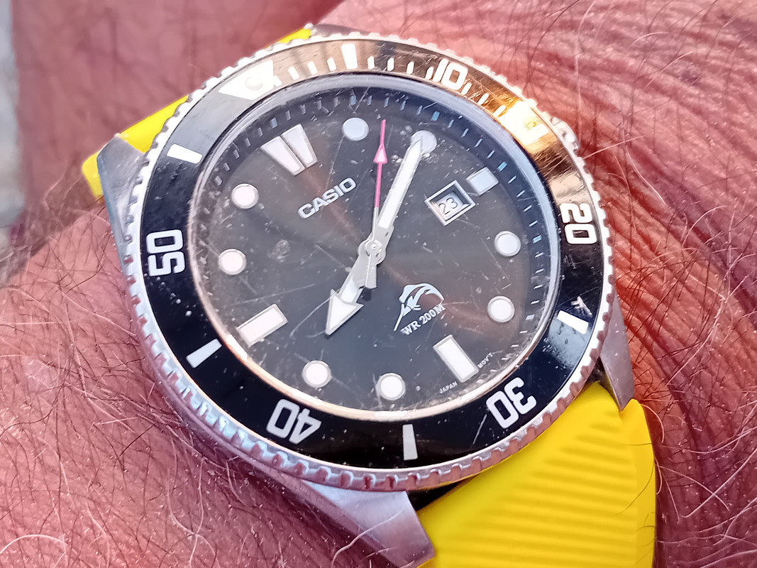Μα ποιος ο λόγος να ΜΗΝ βουτήξει κάποιος ρολόι των 150 ευρώ που είναι ΚΑΙ κινέζος ΚΑΙ δύτης; Και νερό να έπαιρνε θα του κούμπωνα μια καινούργια μηχανή και τέλος. Αυτα τα ρολόγια οφείλουμε να βουτάμε. Για να μην πω ότι οφείλουμε να βουτάμε τα ρόλια γιατί υποτίθεται ότι είναι τέλεια και φτιαγμένα για νερό. Έστω όμως ότι αν ξεχάσουμε ξεβίδωτη κορώνα τον ήπιαμε, τοτε αν όχι το προτζεκτ ποιο;