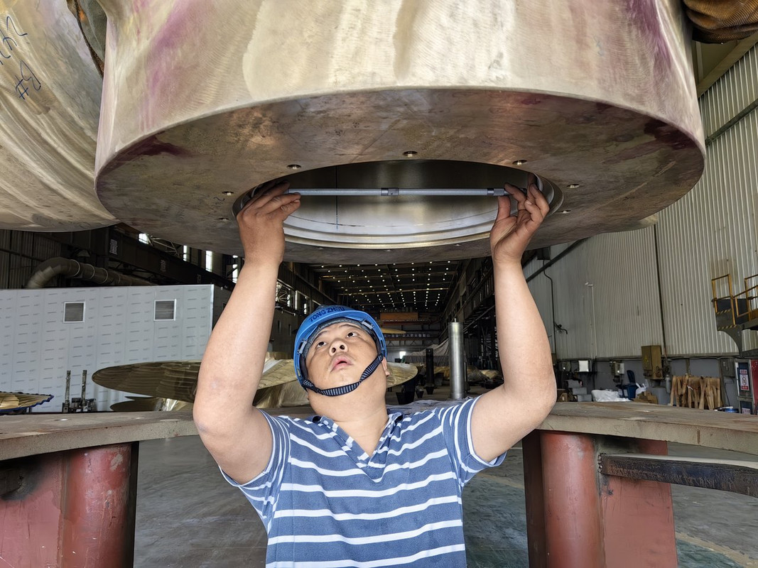 Επιθεώρηση ολοκαίνουργιας προπέλας (7.1m διάμετρος).