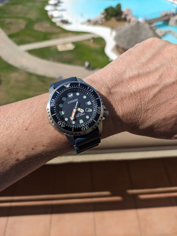 Με το καινούργιο λουρί επιτέλους, το οποίο εξωτερικά είναι δέρμα, εσωτερικά σιλικόνη, και πιο σκούρο καφέ απ' το γνήσιο. Νομίζω ότι τώρα δείχνει πολύ καλύτερο.